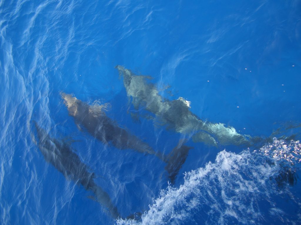 Wir befanden uns plötzlich inmitten einer großen Delfin-Schule. Alles was ich über Delfine weiss, hat sich bestätigt. Sei es das Wahrnehmen von Liebe, Harmonie, Frieden, Freude und Leichtigkeit oder das tiefe Berührtsein im Herzen, in der Seele. Ich konnte mein Glück kaum fassen, die Tränen liefen nonstop. Wir sind in ihr Feld eingetaucht, ihre Präsenz war zu spüren, Raum- und Zeit-Gefühl waren weg, ich weiss nicht, wie lange wir dort waren.